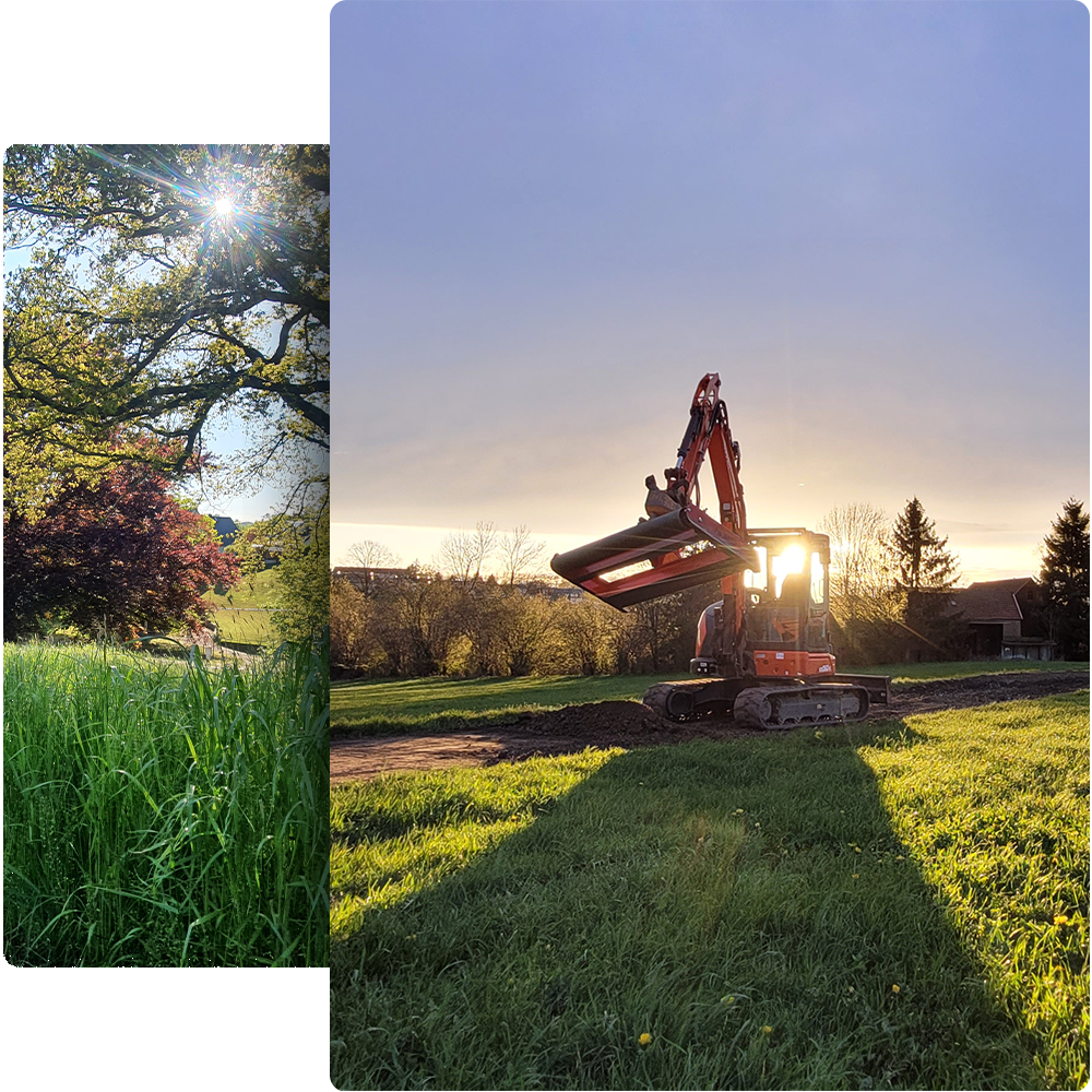 Wir bieten Ihnen zuverlässige Dienstleistungen von Baggerarbeiten bis hin zur Gartengestaltung und Landschaftspflege. Im Zusammenhang mit Erdarbeiten transportieren und beschaffen wir die Materialien für Ihr Vorhaben. Darüber hinaus können Sie bei uns Heu & Stroh in Kleinballen und Schüttgüter aller Art erwerben.